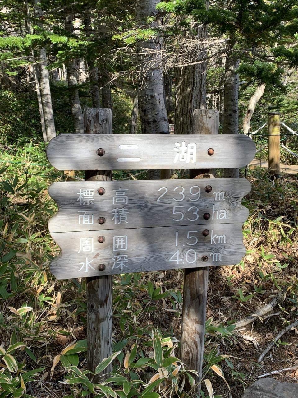 知床五湖小ループで散策をスタートして最初に見えてくるのが二湖でした。周囲約1.5キロメートルと5つの湖の中でも一番大きい湖です。ヒグマが木の実を取るために、木に登った跡が残る場所もあります。地上遊歩道のルートから見ることができます。
