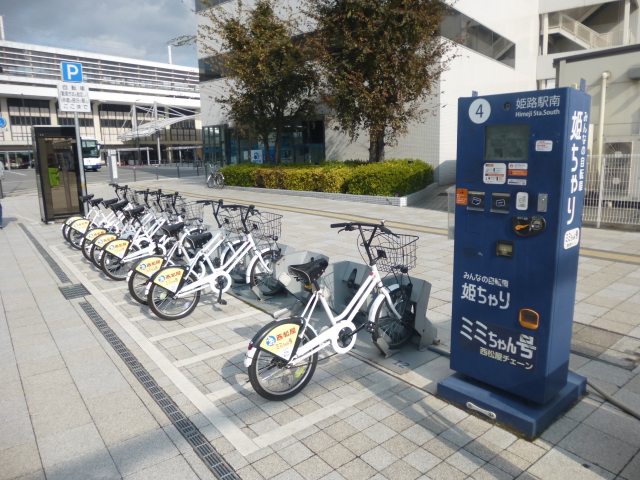 JR姫路駅を中心に数多くのポートを有するサイクルステーション方式のレンタサイクルです。姫路城およびその近辺を観光する際に利用しました。利用に際して登録が必要ですが、手続きは簡単です。60分以内の利用には料金がかからないので、ポートに返してまた借りるという繰り返しを上手くすれば、0円で利用できます。アシスト付きの自転車ではありませんが、姫路城近辺はアップダウンがほとんどないので、観光の強い味方になります。