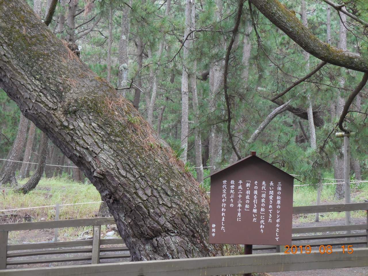 新・羽衣の松の近くには、先代と思われるちょっと痛々しい松と、羽衣の松から穂木を採取し接ぎ木による若々しい二世松もありました。
