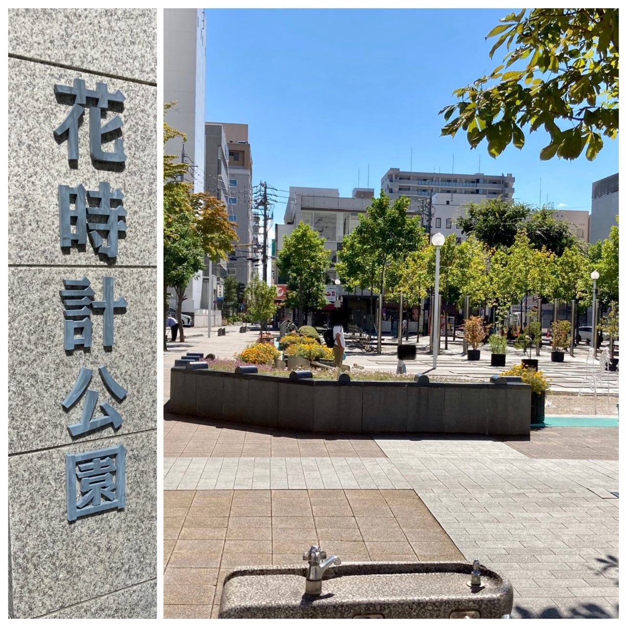松本駅前から伸びる公園通りを歩いて行くと左側にパルコが、そして右側に花時計公園があります。公園というか、広場というか?小綺麗に整備された開放的なエリアです。駅前の一等地にこれだけ広い公園があることに驚きました。