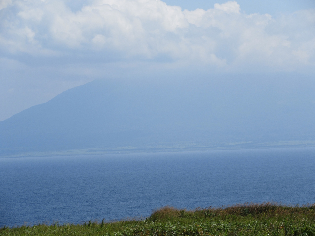 日帰りでハートランドフェリーで、稚内→礼文→利尻→稚内と周り、利尻と礼文で、各々、定期観光バスで観光しました。さて、利尻のランドマークである利尻富士ですが、利尻→稚内のフェリーから良く見えました(写真1枚目)。但し、利尻島観光中や礼文島から(2枚目)は、良く見えませんでした。おそらく、利尻→稚内のフェリーは夕刻で、気温が下降していることと関係があるように、推察致します。