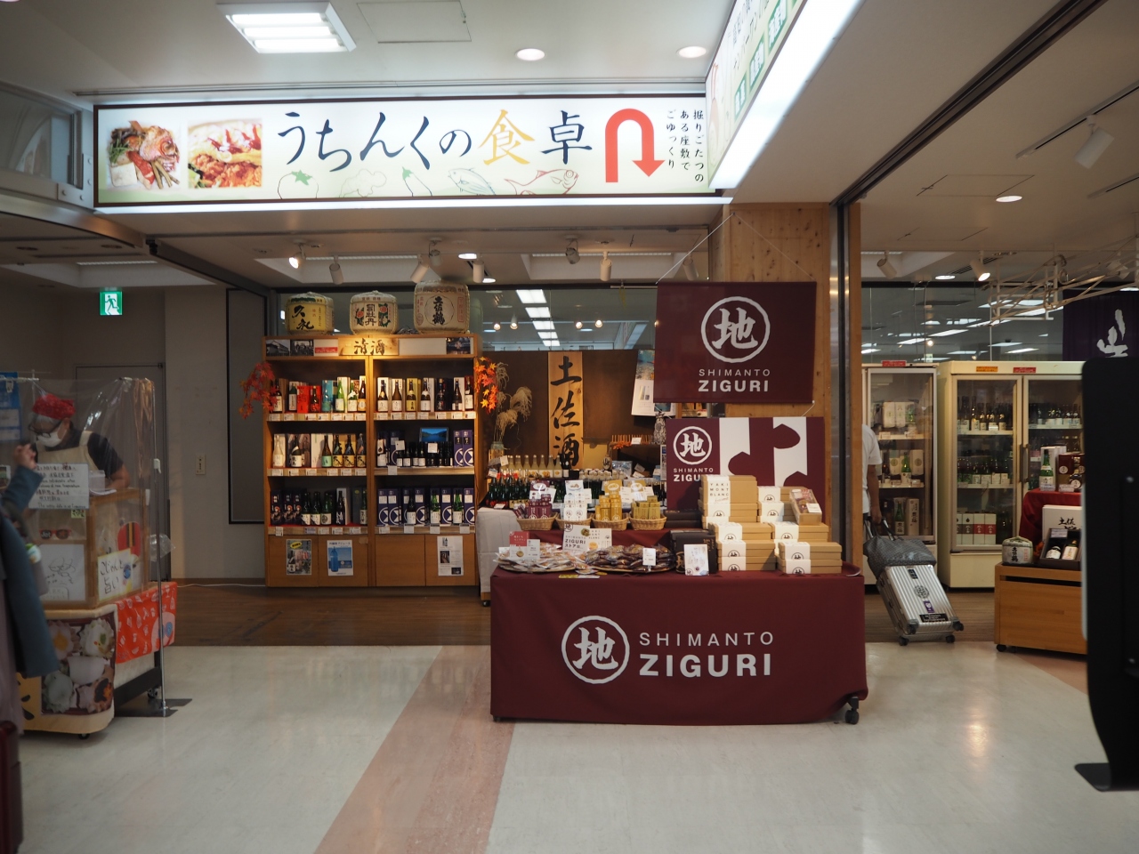 高知空港のターミナルビルの2階にあるお土産店です。2階では広い売り場面積を占めており、高知の有名な菓子、ゆず、かつお、日本酒などの高知らしい土産品がそろっています。高知のお酒というと司牡丹ですが、自宅でも飲みたくなり、小瓶を買って手荷物で持ち帰りました。