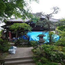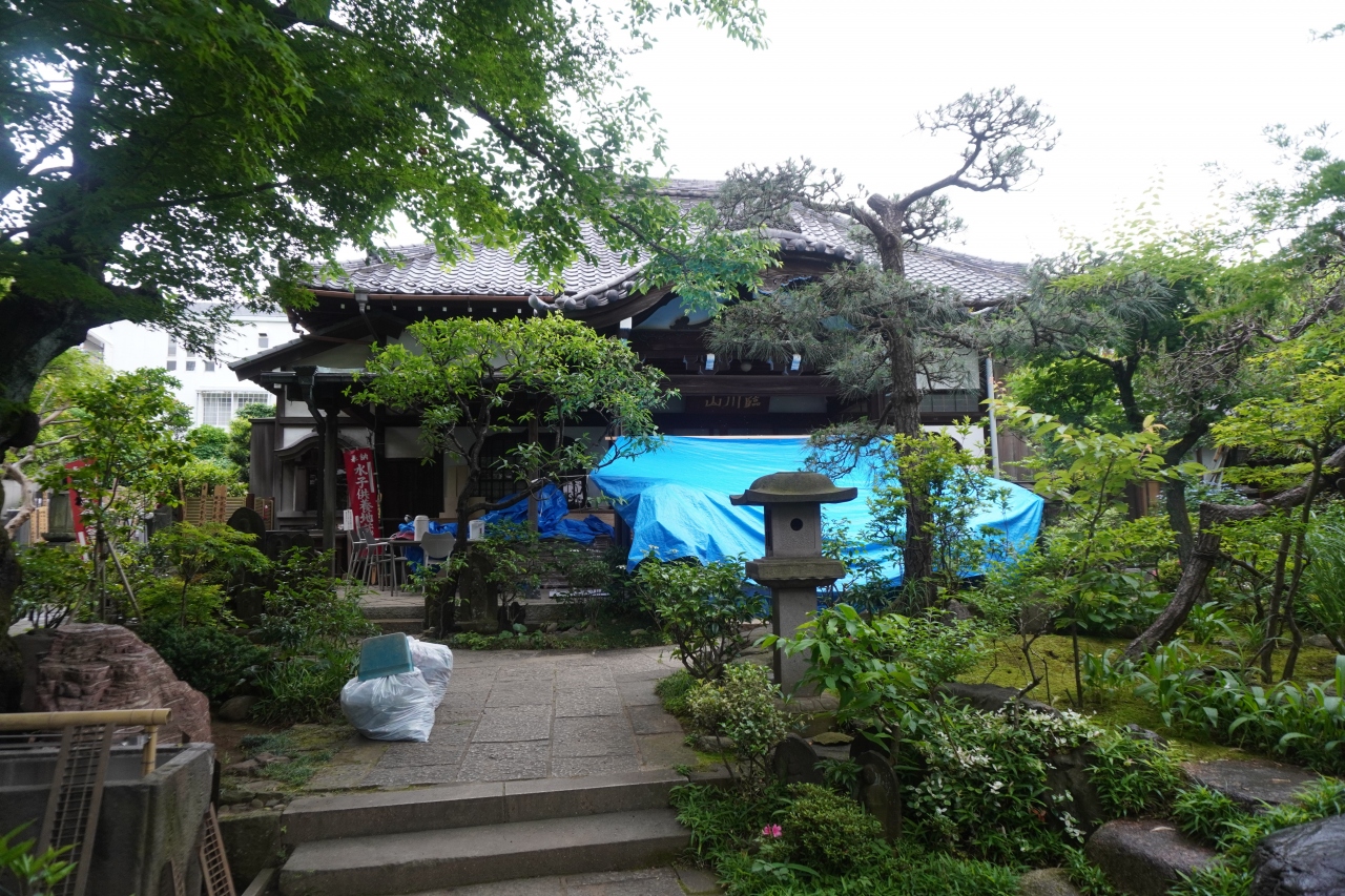 厳浄院は、白山通りに入り口があるのですが、狭い場所に建つ厳めしい山門の向こうにはけっこうしっかりした石段を上っていく必要があります。上がった先は緑の多い境内。本堂が工事中でしたが、浄土宗の寺のそれらしい雰囲気は十分。都心にいることを忘れるようなお寺です。