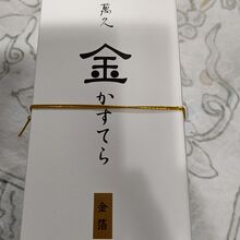 金沢駅の名店街にある店で豆やおかきのようなお土産が有名なお店で何度ご利用したことがある。今回は緊迫のカステラを購入した。萬久の金箔カステラは2回目の購入だが、インパクトが強い。そのため子どもたちのお土産としてはとても喜ばれる。もちろん見た目だけでなく、味は濃く牛乳と、食すと非常によくマッチする。お土産として重量があるのが何店だが差し引いても購入価値あり