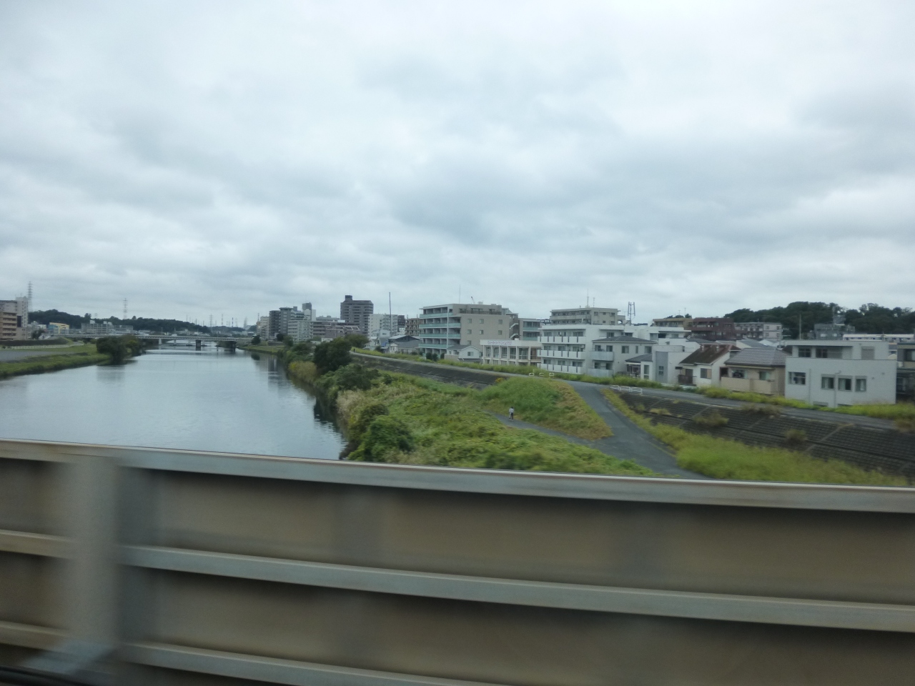 鶴見川は、町田市町の泉を源流とし、横浜市鶴見区の河口から東京湾に注ぐ一級河川です。テレビなどのニュース報道でしばしば耳にしますが、時に氾濫し、また水質問題なども取り上げられることが多いです。小雨も交じる曇天の日でしたが、車窓から見る鶴見川は静かな水面でした。