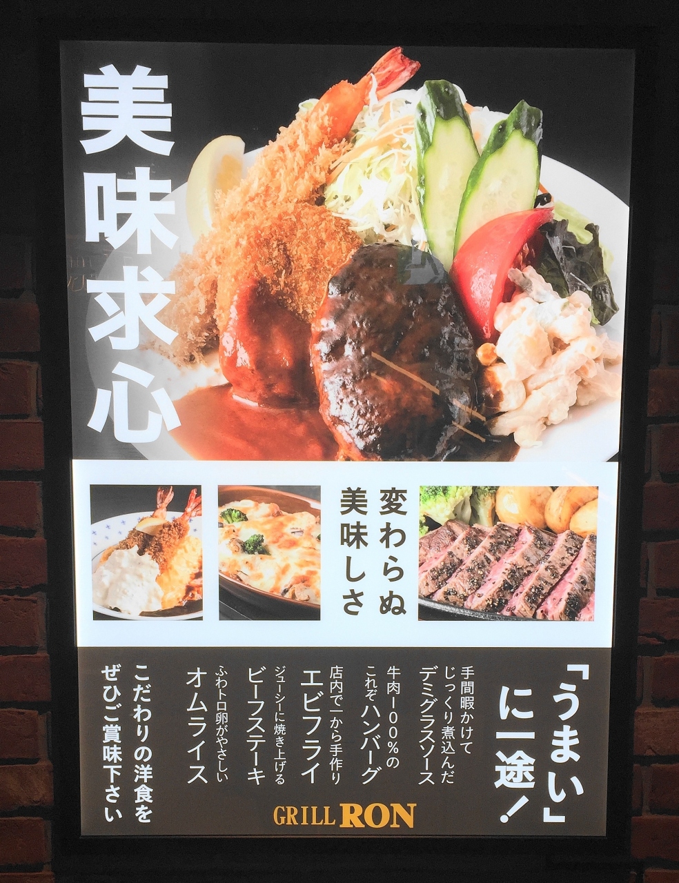 グリル ロンさんはお気に入りのお店、三番街店にはよく行きます。