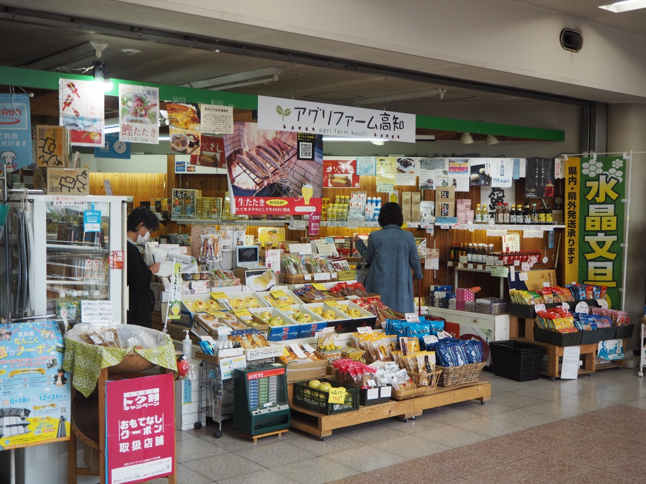 高知空港のターミナルビルの1階の中央部にアグリファーム高知はあります。名前のように高知の名産の農産物やその加工品が販売されています。収穫の時期なのでしょうか文旦(水晶文旦)が店頭に多く並んでいました。また芋けんぴやゆずなどの高知の名産品もありました。ほかにカツオの直送もしているようでした。
