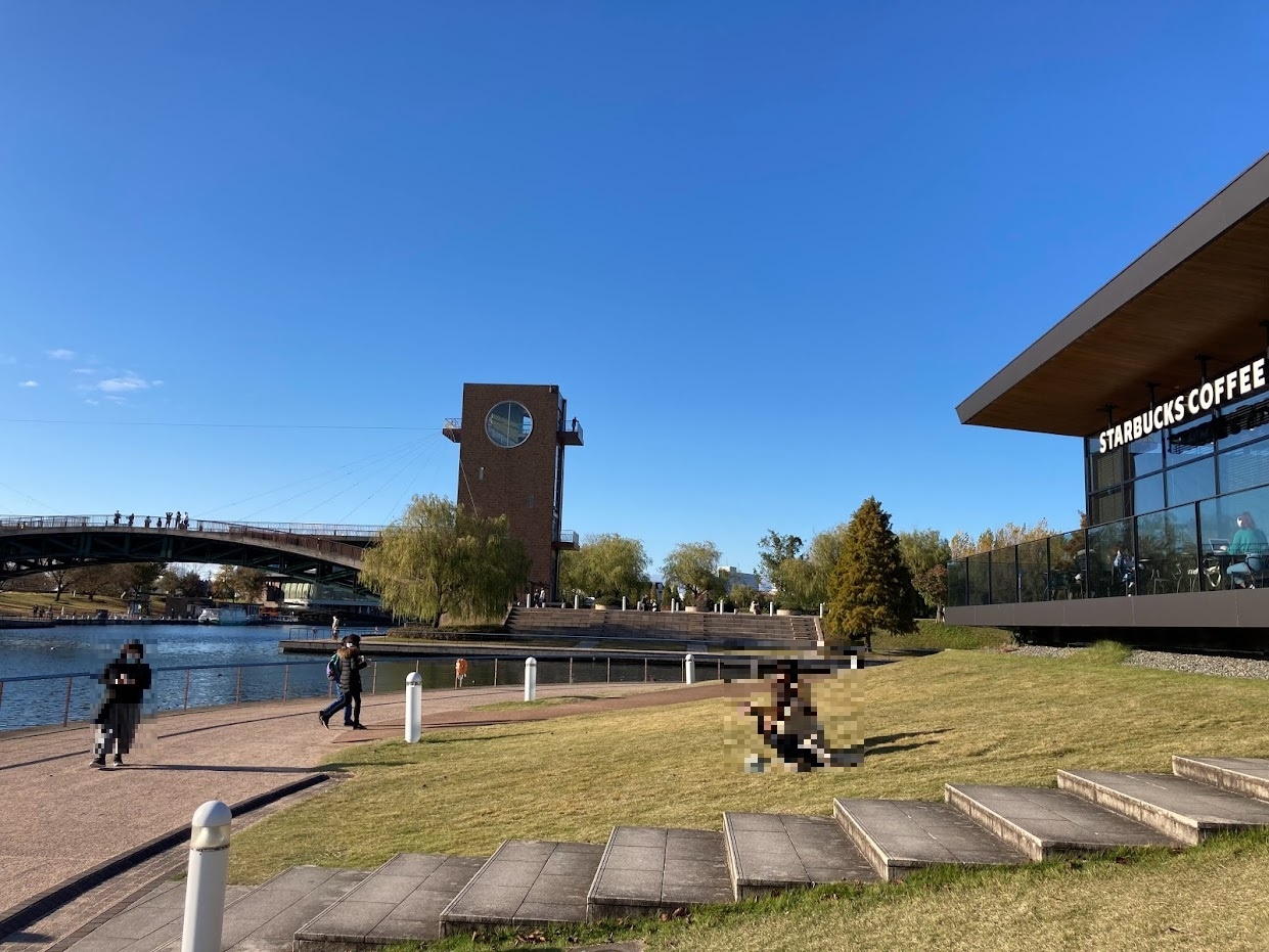 ガラス張りのスタイリッシュな外観も、前に広がる富岩運河とは自然の景色とのバランスも素晴らしかったです。注文の行列は店外までできていましたが、流れは速く、さほど待たずに注文を受けてもらえました。天気も良かったので、テラス席や公園の芝生で運河を見ながら飲食されている人が多く、店内は意外に空いていました。