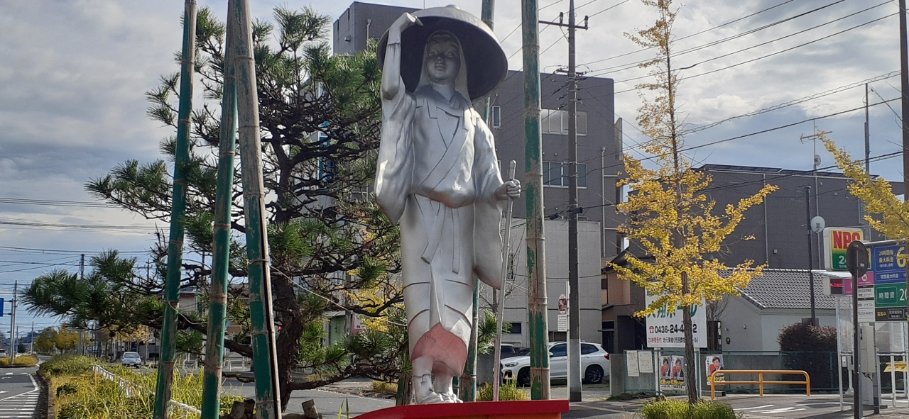 菅原孝標女が13歳で京都へ父と一緒に旅立つ姿をイメージしたモニュメントです。