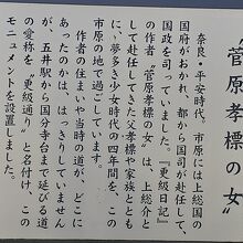 この銅像のある通りを彼女の「更級日記」にちなんで更級通りと言うそうです。