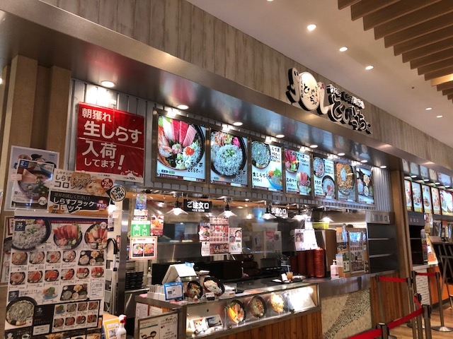 JR辻堂駅直結の大型ショッピングモール(テラスモール湘南)の3階、フードコートの中にある海鮮のお店です。フードコートのテーブルで食べることも、テイクアウトで持ち帰ることもできます。湘南で獲れた新鮮なしらすを使った丼ものや、しらすの小鉢など、しらすを使ったメニューがそろっています。
