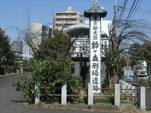 「東京都史蹟 鈴ヶ森刑場遺跡」という大きな柱が立っているのですぐそれとわかります。