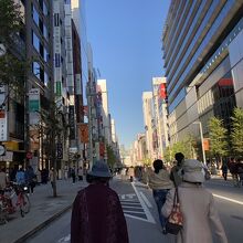 メイン通りの銀座中央通りは晴天の下、歩行者天国が実施されていました。