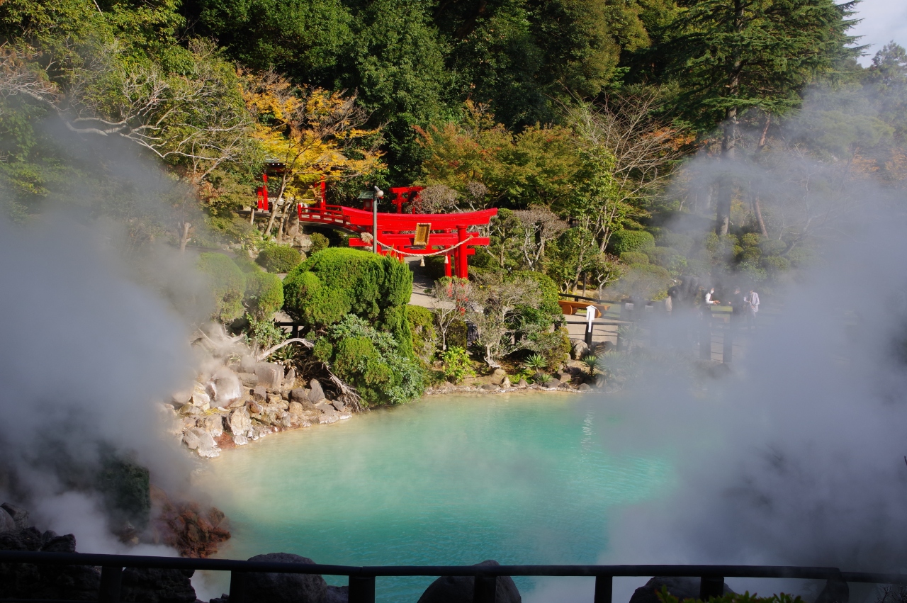 - 日本最大の湯量を誇る別府は、平日でも結構な賑わいでした。