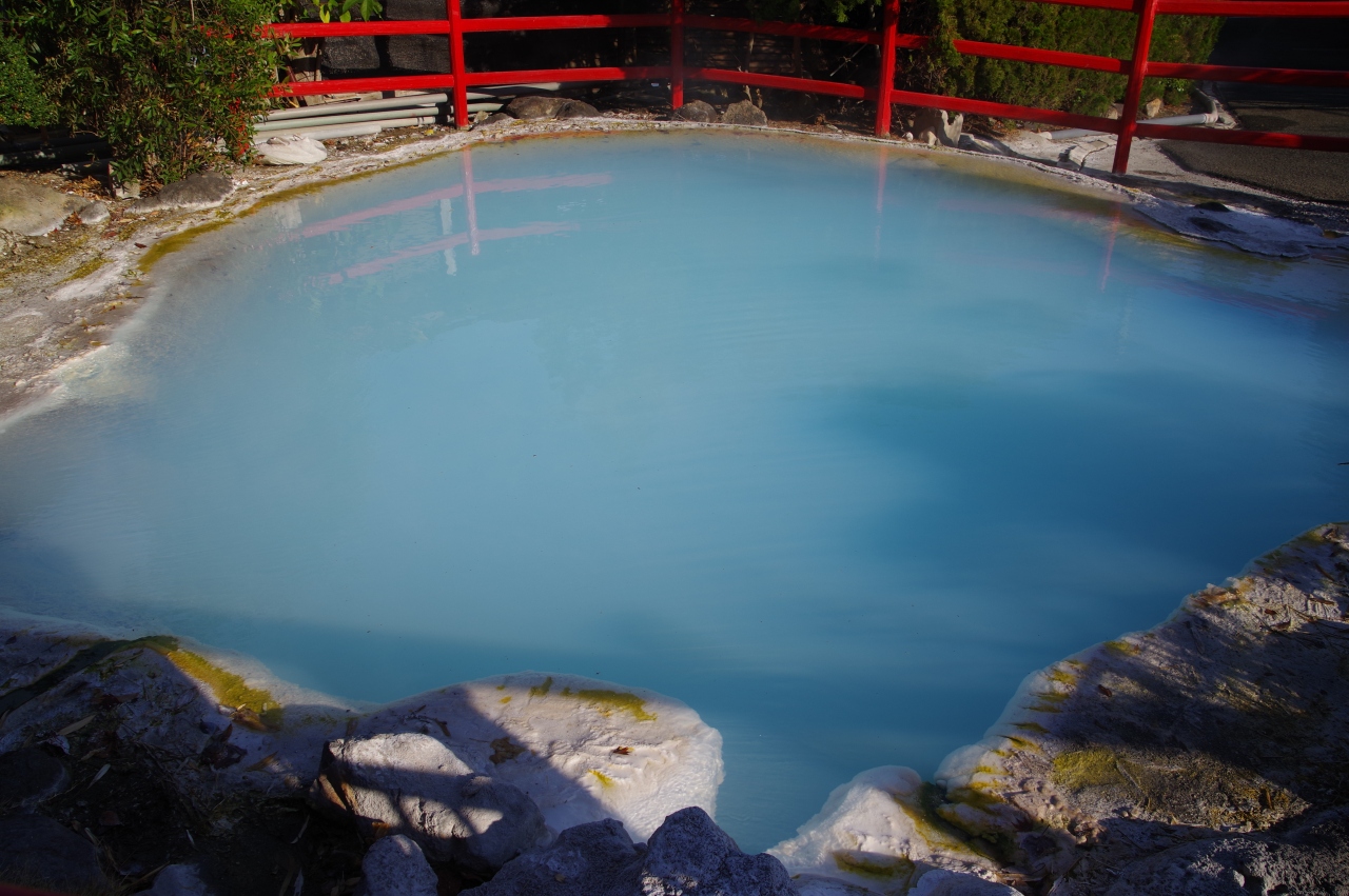 別府の地獄めぐりとは、「海地獄」「血の池地獄」「龍巻地獄」「白池地獄」「鬼石坊主地獄」「かまど地獄」「鬼山地獄」の7つを巡る観光コースのことです。前4つの地獄は、 国指定名勝として登録されています。どこの地獄も入場料は大人400円で、7つの地獄全てに入れる共通観覧券は2,000円です。探せば、共通観覧券が1割引きになるクーポンもあります。割引券を使えば、5つ以上の地獄を巡るなら共通観覧券がおトクですが、私はレンタカーがあるものの、駐車場等の出し入れが面倒に感じたため、亀の井交通の観光バスにバスガイドの昔ながらの案内付きツアーがあるということで、迷わずツアーにしました。