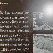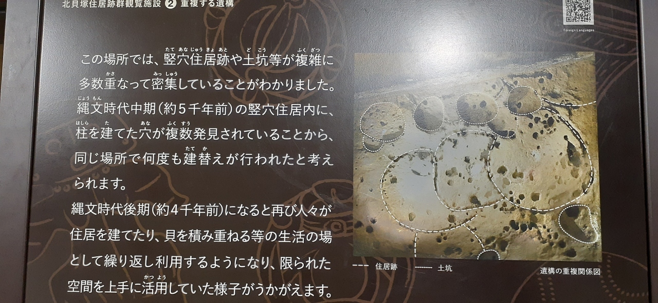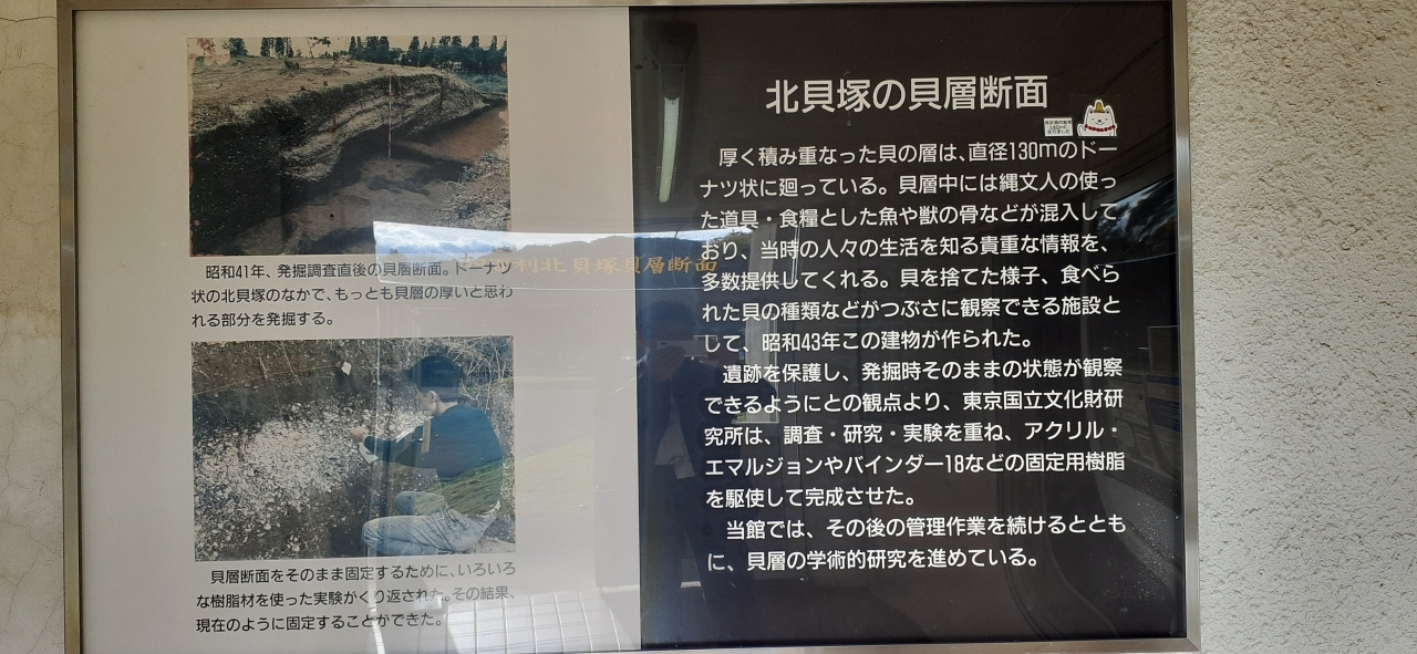 中には貝塚の断層をそのまま保存している「加曾利北貝塚貝層断面館」、竪穴式住居跡をそのまま保存している「北貝塚の住居跡館」、出土品を展示している博物館、復元された竪穴式住居などがあります。