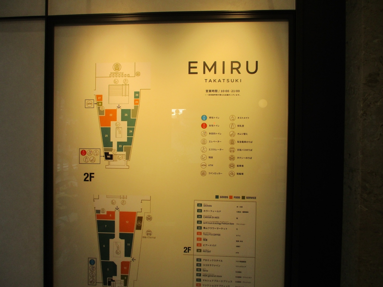 阪急高槻駅直結の「エミル」にはたくさんのお店が入っています。1階と2階があります。