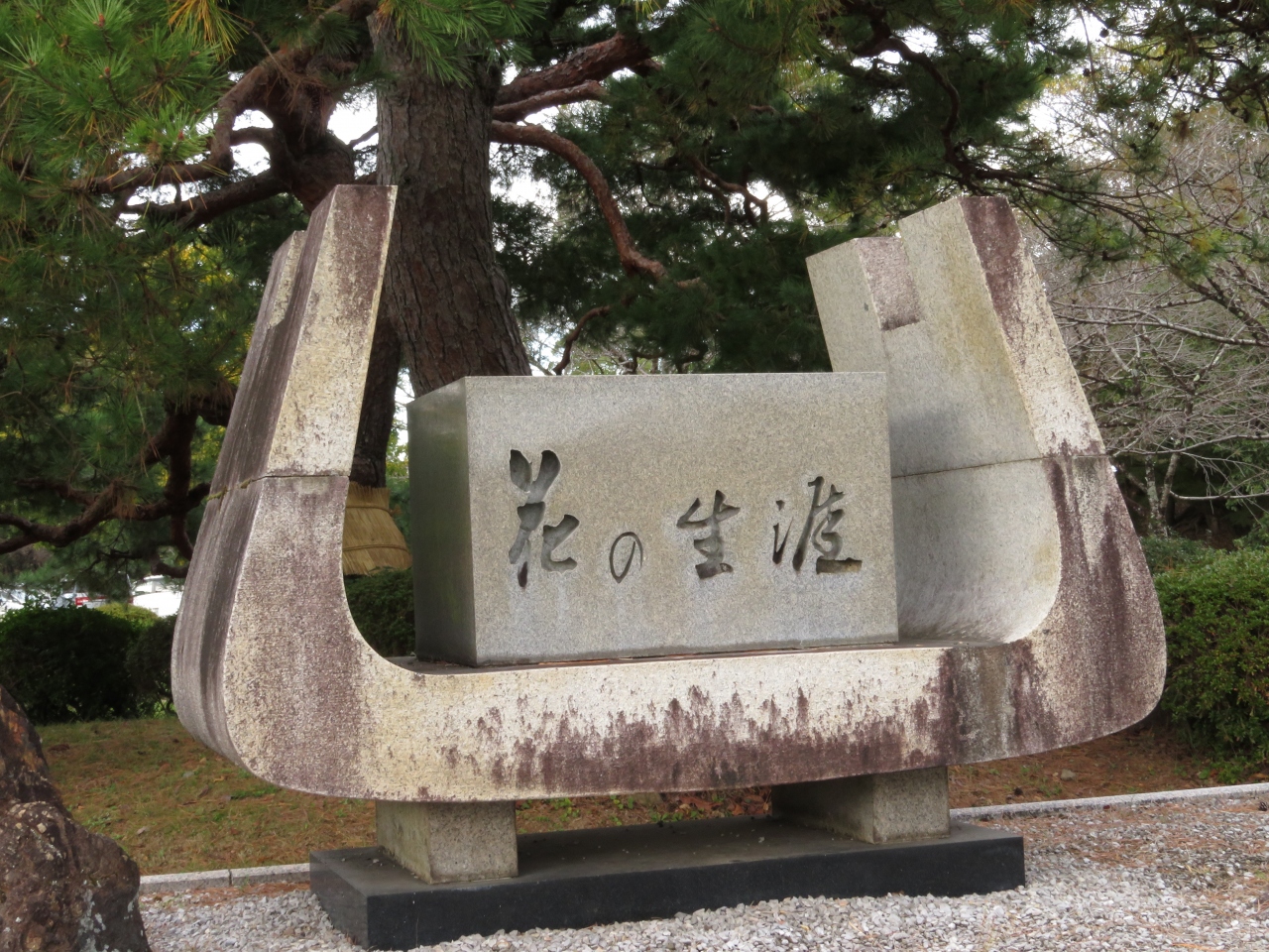 お堀のそばの金亀公園には、前回、井伊直弼銅像を見に来たときに気がつかなかったのですが、井伊直弼を描いたNHKドラマ・花の生涯の記念碑があり足を止める人。水戸市から送られた二季咲桜もかわいらしい花をつけていました、広いお城の中で一息つくのにもいい公園です。