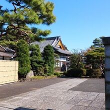 間口が広めの門から境内に入ると正面に手入れされた木々のある庭園、左側奥に本堂が鎮座していた。本堂は和風の落ち着いた立派な建物で、コンパクトだがお寺らしさが感じられる場所だった。