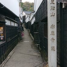 足助中心部の表通りから、裏側へと抜ける小路です。11月中旬の午後の時間帯に訪問しました。小路は、幅がかなり狭かったです。人がすれ違うことは可能ですが、車の通行は不可能な幅でした。それが、足助の古い町並みと調和しており、良い感じでした。
