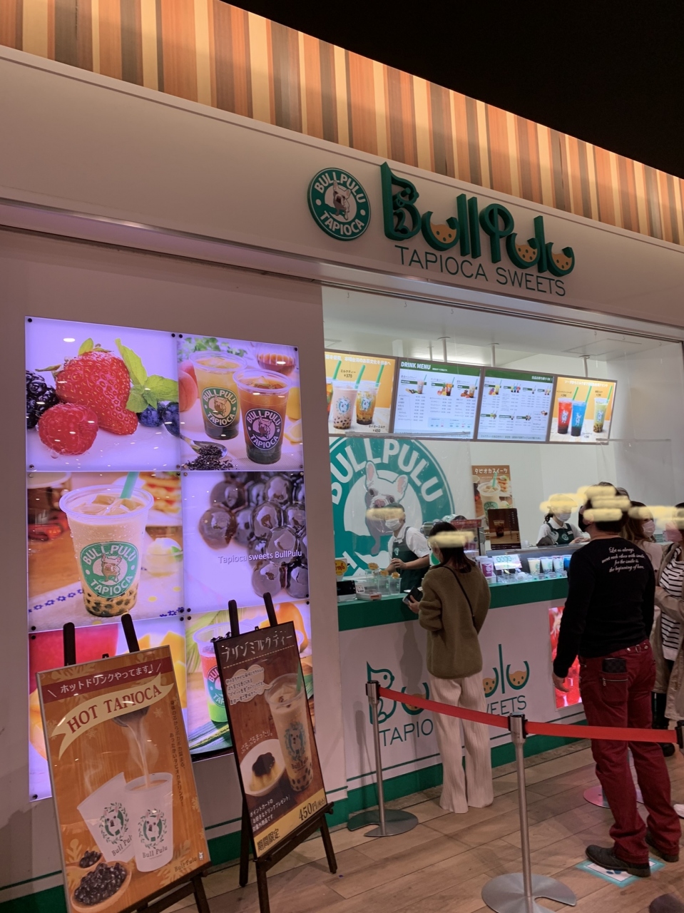 「アリオ 八尾」の1階にある こちらのお店【 ブルプル 】香り豊かな「タピオカミルクティー」をはじめとした 華やかなドリンクが たくさんあります。まだまだ大人気の「タピオカ」この時 も 行列 ができていました。限定商品「プリンミルクティー」は デザート感覚のドリンク。