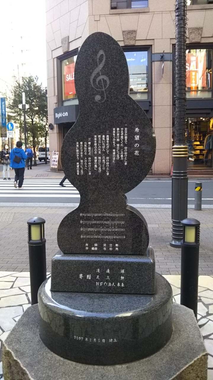 そこに建つのが「希望の花」という歌(作詞 足立勲、編曲 佐伯亮)の歌碑であるが、そんな歌を知っている人は、通行客の1%もいないのではないかと想像する不思議な歌碑がある。