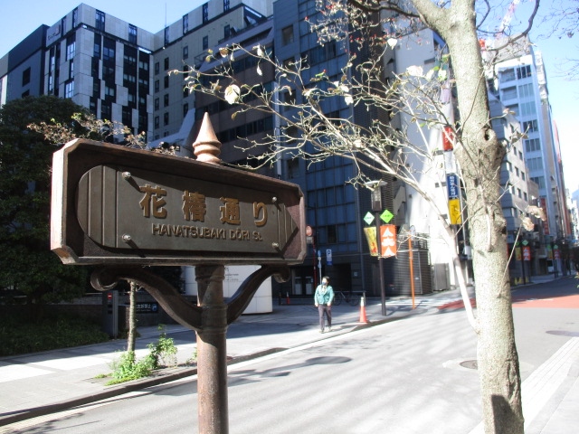JR新橋駅から中央通りを銀座方面に進み資生堂ビルを左折すると銀座7丁目と銀座8丁目の間にある花椿通りに歩いて7分ぐらいで着きます。花椿通りは昭和初期に出雲椿を街路樹として出雲から寄贈されたのが名前の由来だそうです。資生堂ショップや飲食店が多いですが中央通りの喧騒に比べ落ち着いた雰囲気でノンビリ散策できました。椿開花の2月頃に訪問したいと思いますが花が落ちるの見るのは侘しいかも。