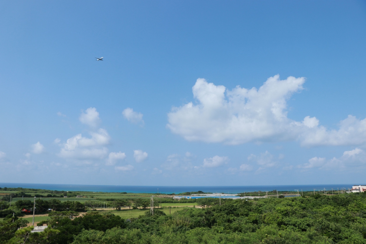 島の中で一番高いところにあり、展望台からは島だけではなく海を挟んで反対側にある宮古島も一望できるスポットとなっています。タイミングが良ければ宮古空港や下地島空港を離着陸する飛行機が見られることも。駐車場が激セマなので混雑時や運転初心者は駐車に神経を使うかもしれません。