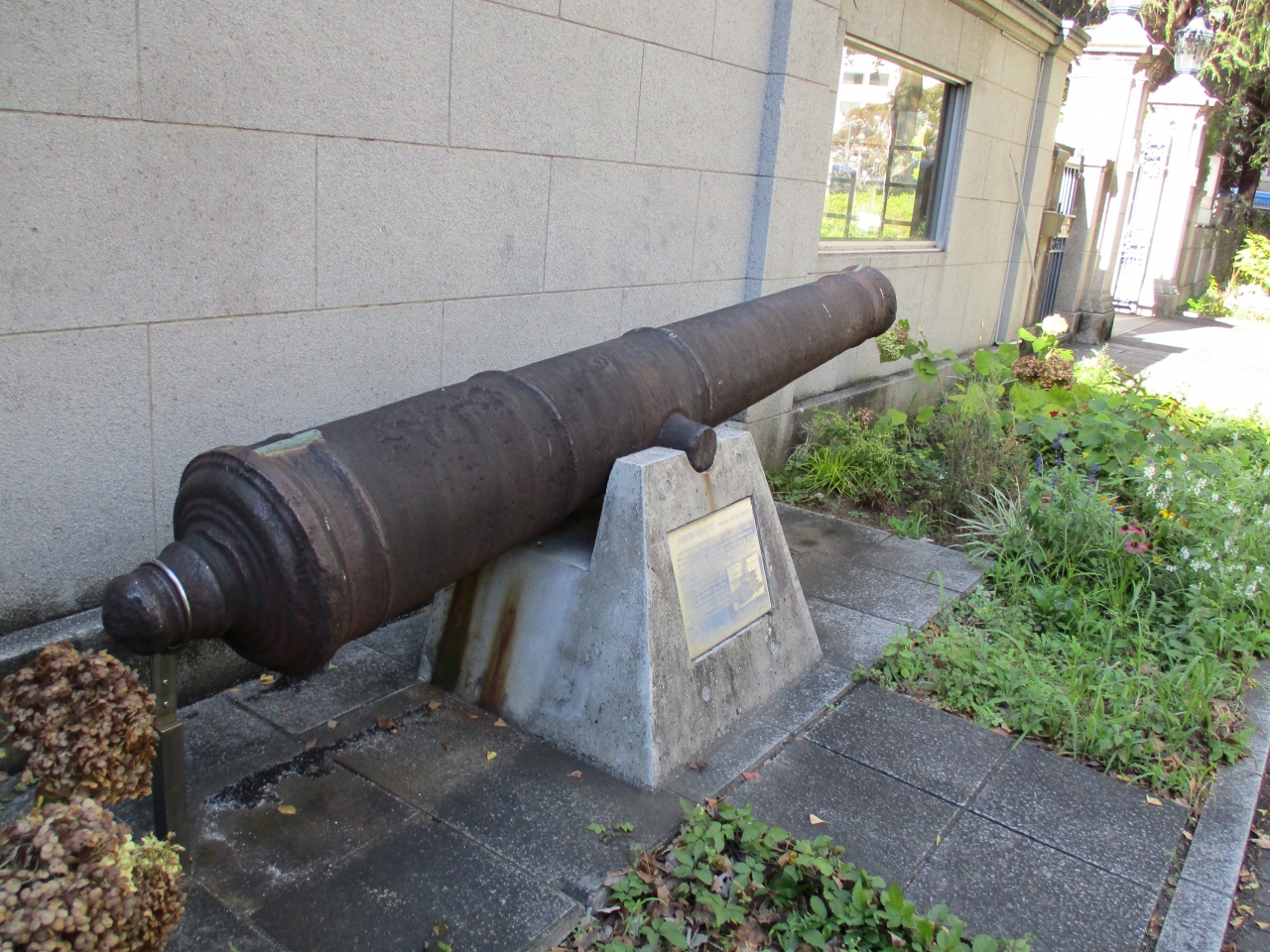 横浜の開港広場近辺を散策していて、開港資料館脇に、大砲が置かれていてびっくりしました。かつて横浜が開港した時に持ち込まれた大砲のようです。見た目にもドッシリした威圧感があって、当時の日本人には想像できない武器だっただろうと思いました。