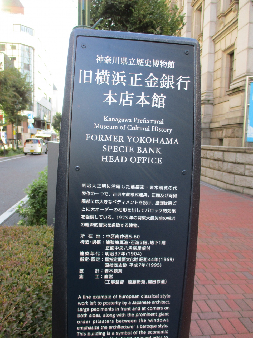 関内の南仲通近辺を散策していて、とてもレトロで重みのある建物がありました。現在は建物に相応しい県立博物館ですが、当初は銀行だったので、お金を扱う場所としての威厳を備えた建物にしたのかもしれません。外壁や屋根の上の緑色のドームなど、どの角度から見ても素敵な建物でした。
