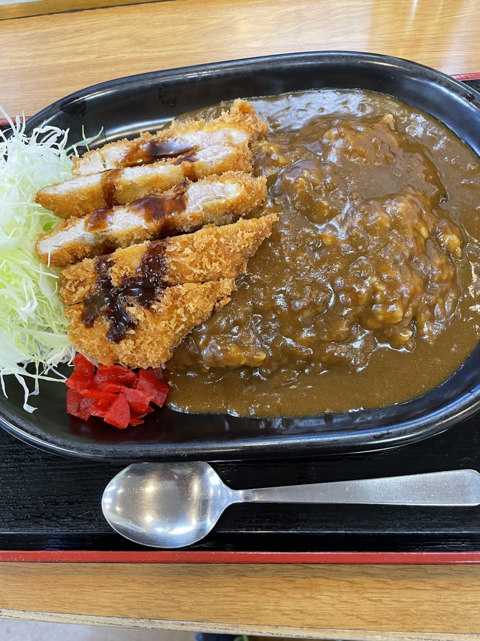 ランチの時間でどこで食べるか悩んでる時に目に入ってきた食堂。環状八号線沿いなんで駐車場を見つけおすすめメニューのカツカレーを。待つ事数分、かなりのボリュームに圧倒されましたが揚げたてのカツとカレーはピッタリ。