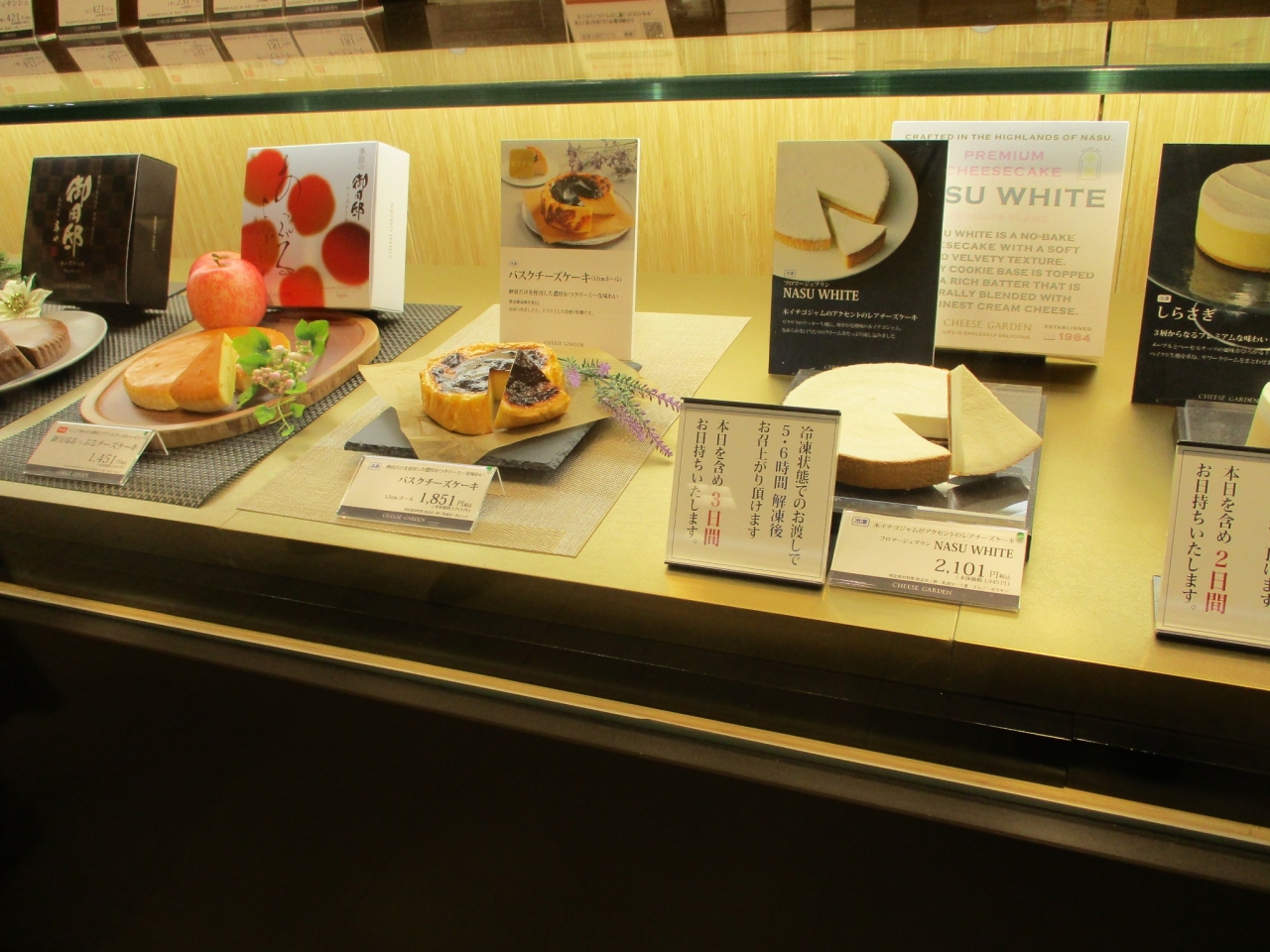 那須高原のチーズケーキのお店が阪急うめだにも入っています。初めて知りました。おいしそうなチーズケーキ各種がショーケースに並んでいます。どれもおいしそうです。「木いちごジャムがアクセントのレアチーズケーキ」など冷凍状態のケーキもありました。なにかと便利です。チーズケーキが好きな人にぴったりです。