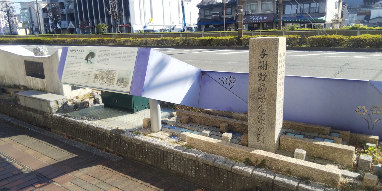 堺市堺区にある生家跡です。近くには利晶の杜や開口神社など与謝野晶子ゆかりの地があります。あわせて訪れてみて欲しいですね。生家跡には生家跡の石碑や歌碑、説明看板などがあります。チンチン電車なども近くを走っています。