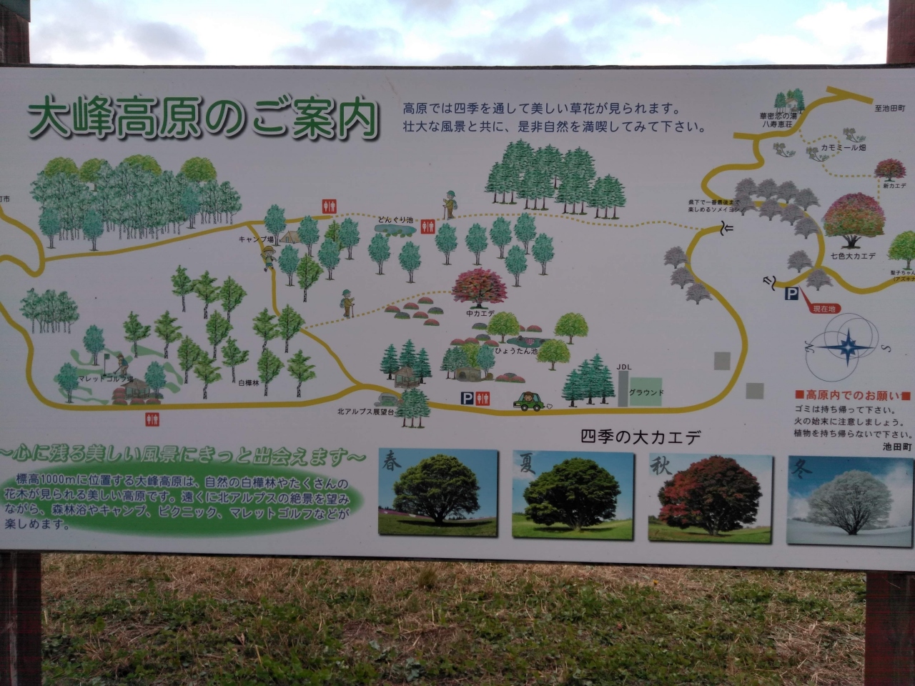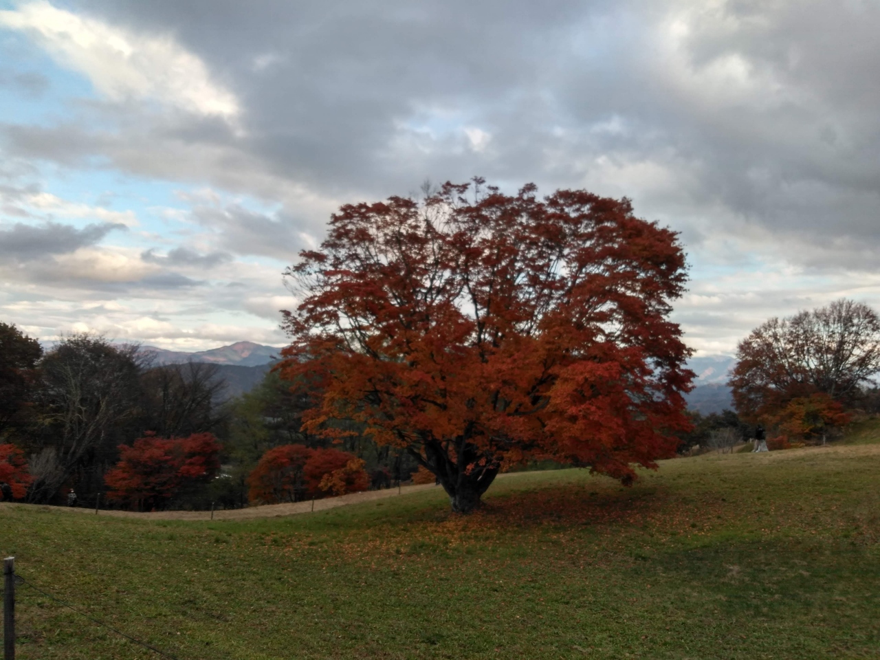 ネットの紅葉情報では「見頃」とありましたが、2021年11月3日に行ったら、もう見頃を過ぎていました。無料の広い駐車場があります。夕方で雲っていて、色も赤から茶色がかっていたり、落ちた葉もありましたが、山々の眺めが良かったです。