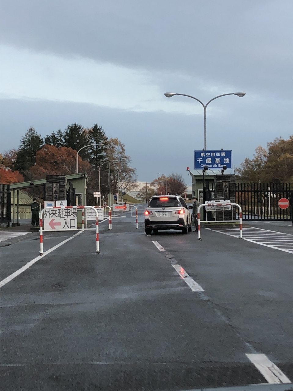 道なりに進んでいくと、千歳自衛隊の基地門前に着いてしまいました。