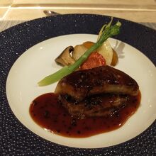 プリンス京都宝ケ池ホテルの洋食メインダイニングです。中庭を望めます。しっかりしたオ一ソドックな欧風料理で、たっぶりのフォグラがのった肉も美味しかったです。四種のワインが味わえるワインセット5000円もあり楽しめました。高価格なので、宿泊するなら、食事付プランの方が良いです。