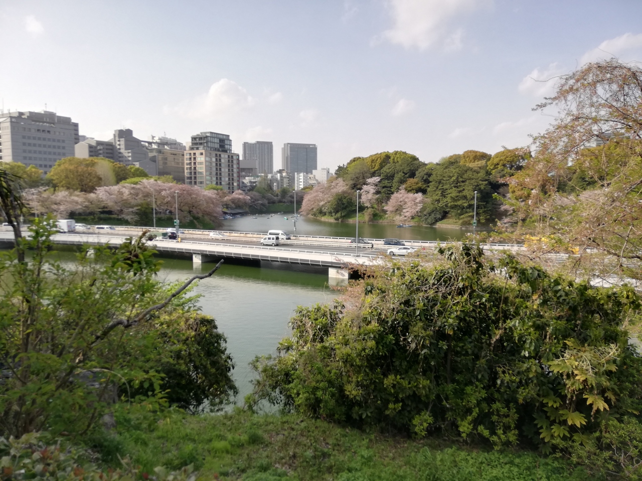 有名な桜の名所です。今回は4月1日に千鳥ヶ淵の南側から眺めました。ちょうど桜が満開となっていました。首都高が真ん中を通って、その向かい側に満開の桜がきれいに咲いていました。都心の真ん中にこういう場所があったのが奇跡的なことだと思います。