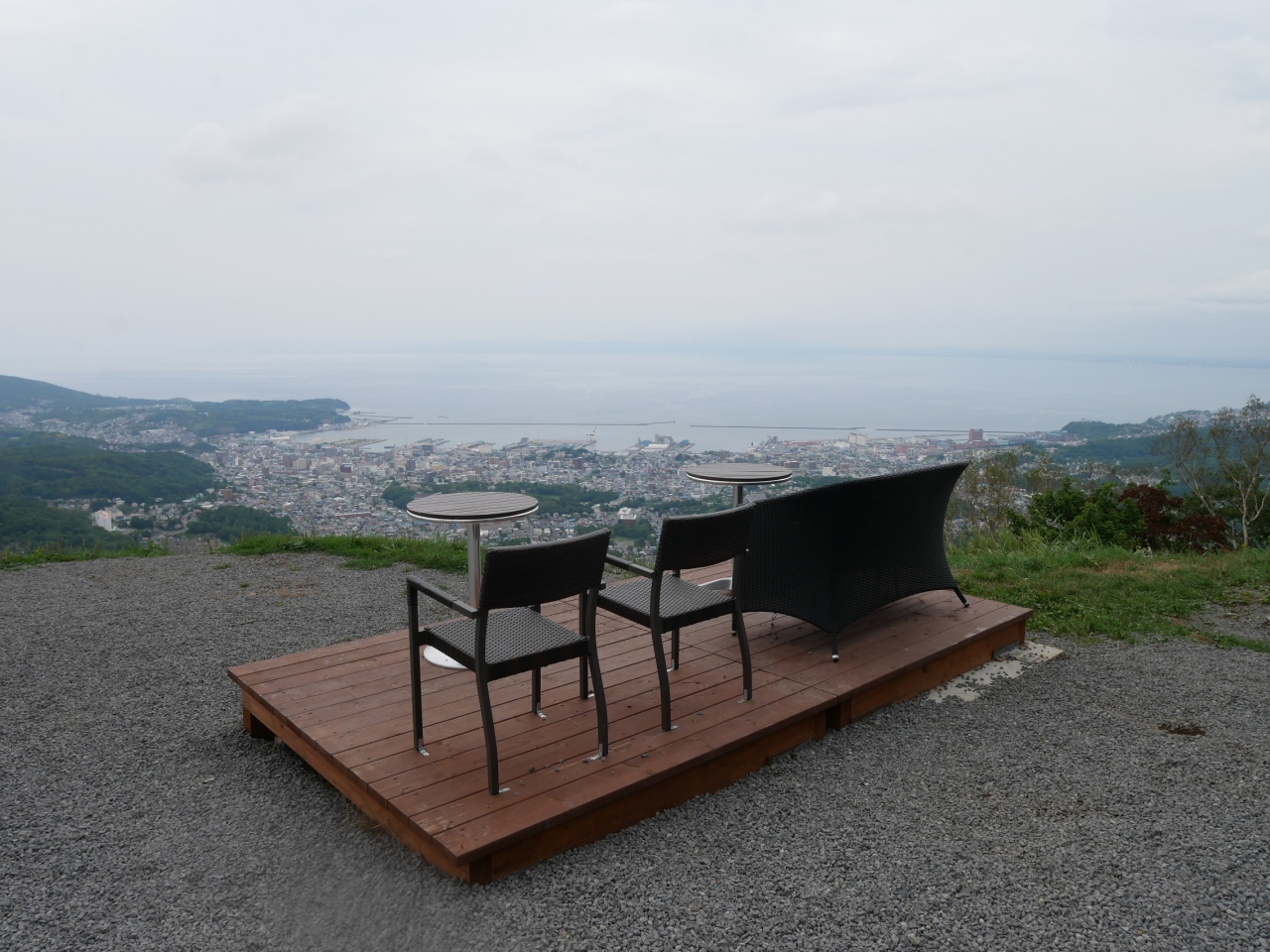 天狗山をロープウェイで上がってそのロープウェイ乗り場を降りるとすぐ横にある展望スポットです。