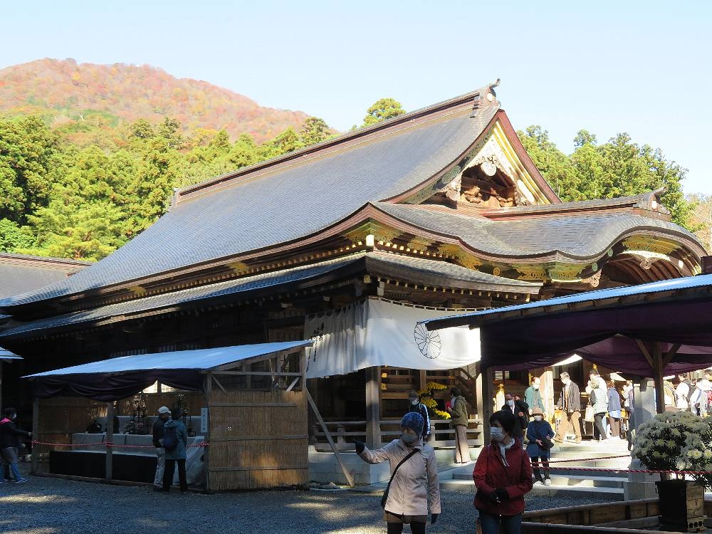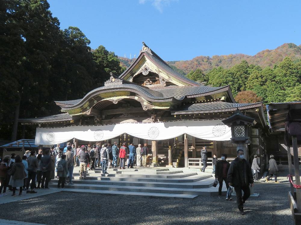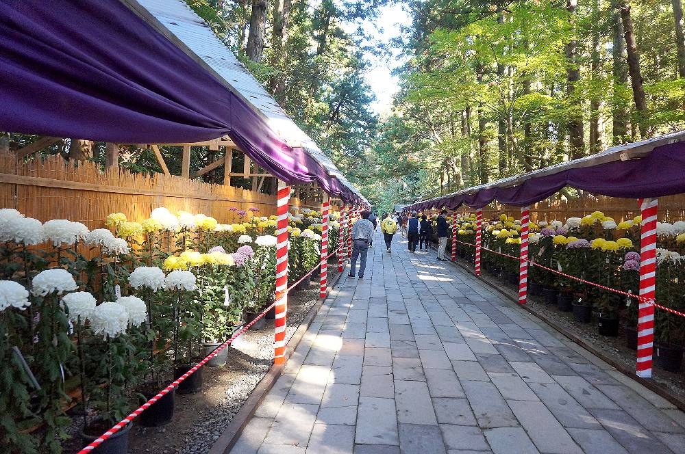 弥彦公園のもみじを見た後、訪れました。ちょうど菊花展が開かれていたのですが、正直言ってもみじよりも菊に感動しました。菊にはいろいろな種類があり、その日初めて見る種も多かったです。菊を育てている方のご苦労が想像できるくらい、すばらしい作品ばかりでした。神社も立派なつくりで、見ごたえがありました。残念ながら参拝者の長い列ができており、時間が限られていた私達は参拝は断念しました。