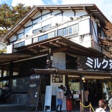 那須高原の南ヶ丘牧場のほぼ中央にあるめぇ~めぇ~広場の南側にミルク茶屋があります。南ヶ丘牧場の中にはソフトクリームを販売している店が2つありますが、ミルク茶屋の方が列ができる程の人気です。他の店とは比較にならない程濃厚でクリームの様な味が美味しいです。しかし、値段は500円とちょっと高いです。