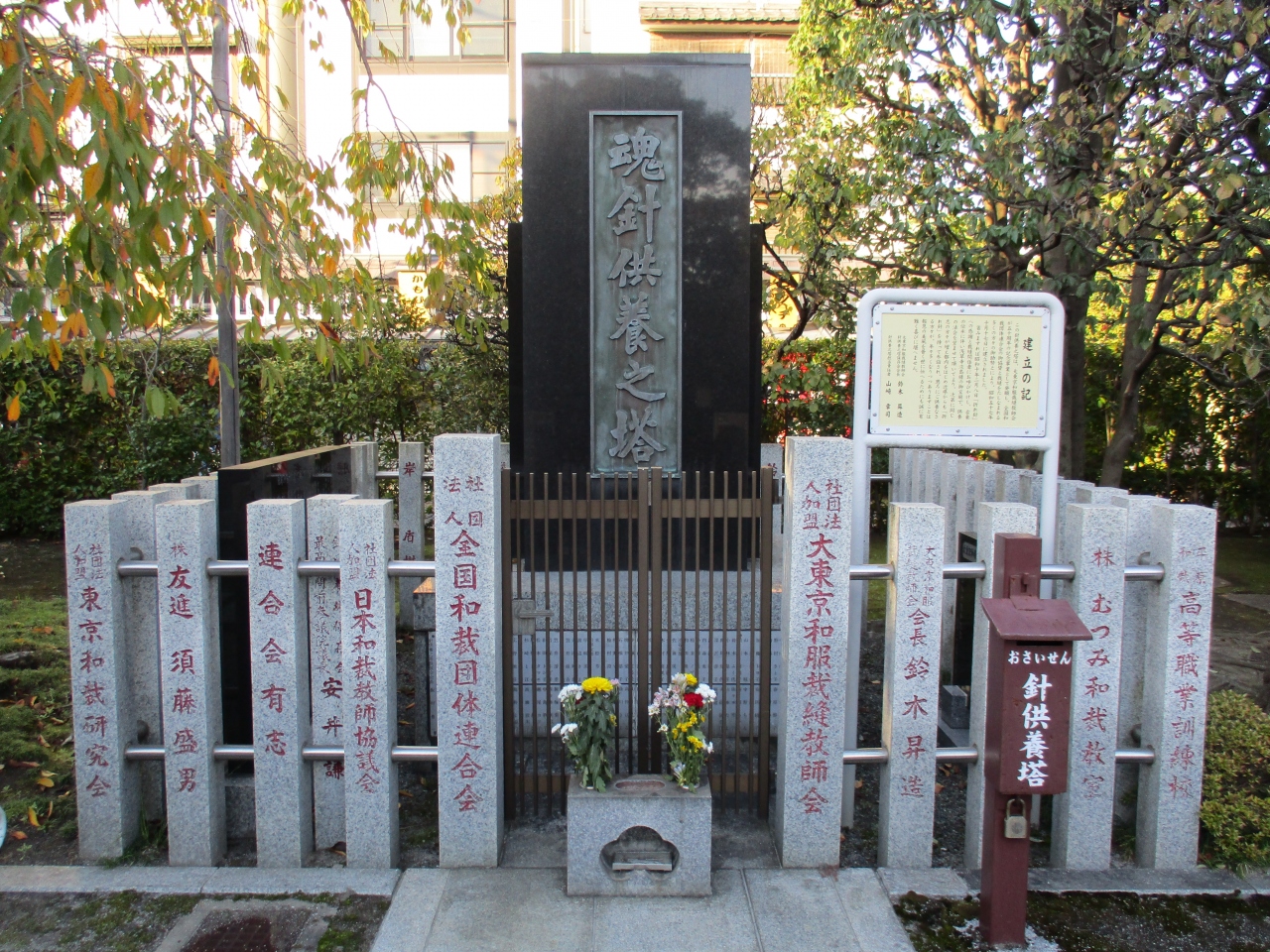 浅草寺参拝のあと、境内を散策していた時に、立派な石碑が建てられていたので立ち寄りました。和裁などで使用する針の供養塔でした。建立はそれほど古くはありませんが、和裁に携わる方たちの針への思いが伝わってくる気がしました。
