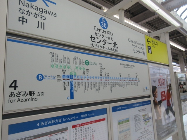 横浜市営地下鉄でセンター北へ行きました。この路線はあざみ野から湘南台をつないでいるので、それなりに長い距離を走っています。コロナも落ち着いたからか、平日昼間でしたが車内は結構混んでいましたので座れる感じではなかったものの、ぎゅうぎゅうとまではなっていませんでした。このセンター北とか南とかではグリーンラインとも乗り換え可能です。