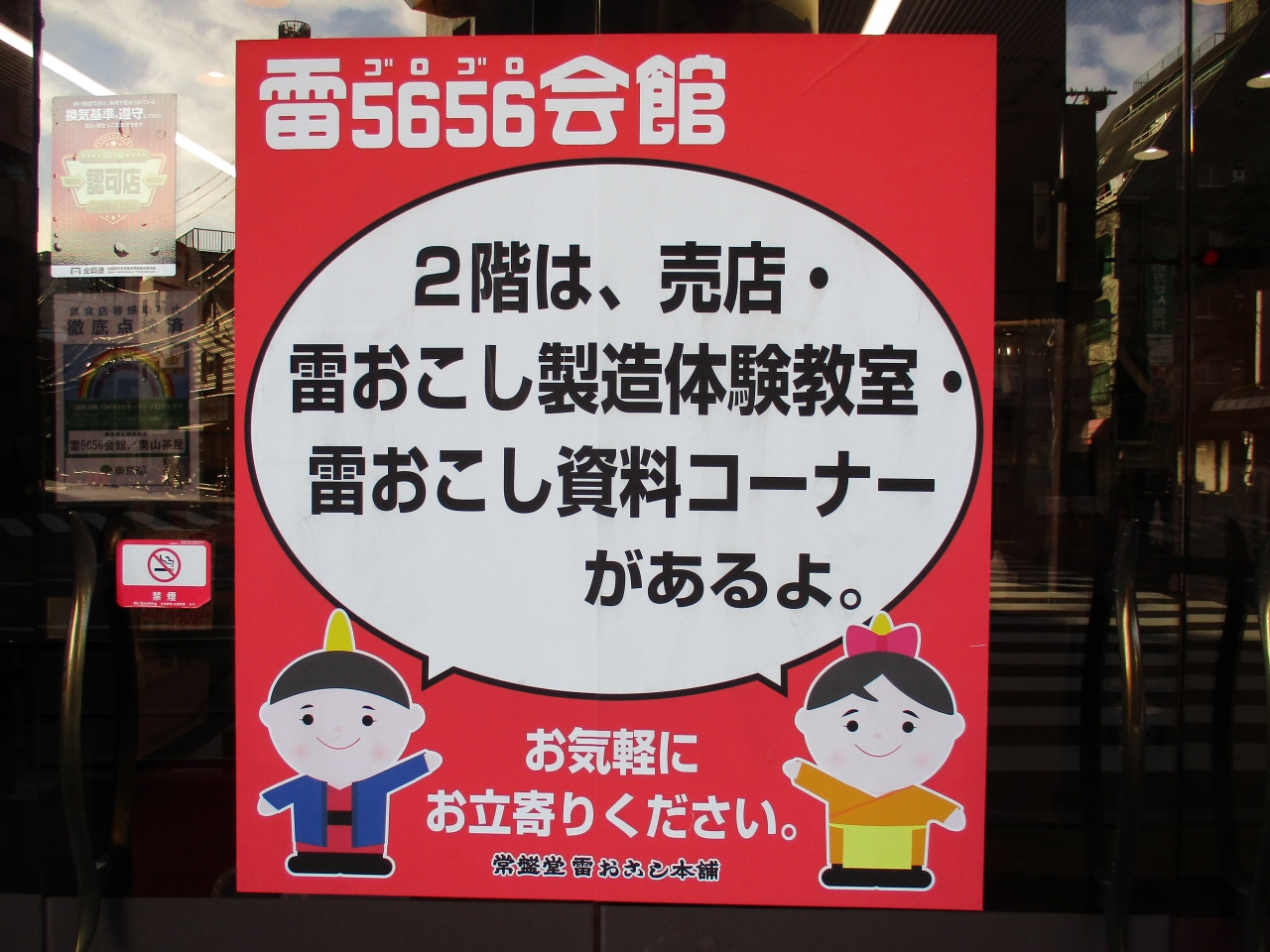 浅草の言問通り沿いを散歩していて、とてもユニークな名前の建物を見つけました。雷にちなんで5656会館とは、しゃれた名称だと思いました。中には雷おこしの売店や、製造体験教室もあるので、浅草に来た観光客にはとても良い場所だと思いました。