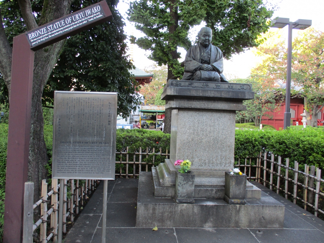 浅草寺境内を散策していた時に、瓜生岩子の像が建てられていました。女性として社会福祉事業に大変貢献した方で、前から大河ドラマで彼女の一生を取り上げて欲しいと思っていた方です。当時は今と違って大変な苦労があっただろうと、像を見ていて思い起こしました。