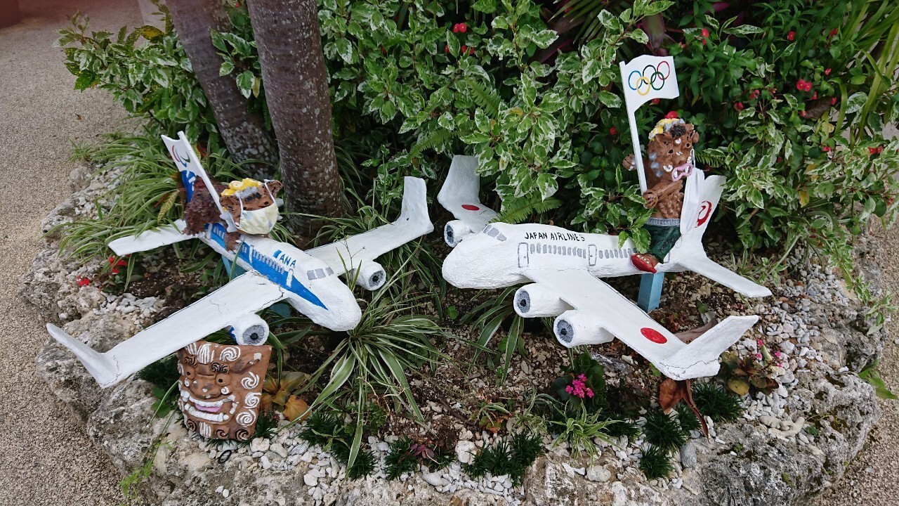 また空港にはかわいらしいオブジェもたくさんあって凝ってるなと思います。空港のすぐ外のANAとJALの飛行機のオブジェがとても可愛らしかったです。とても凝ってますね。
