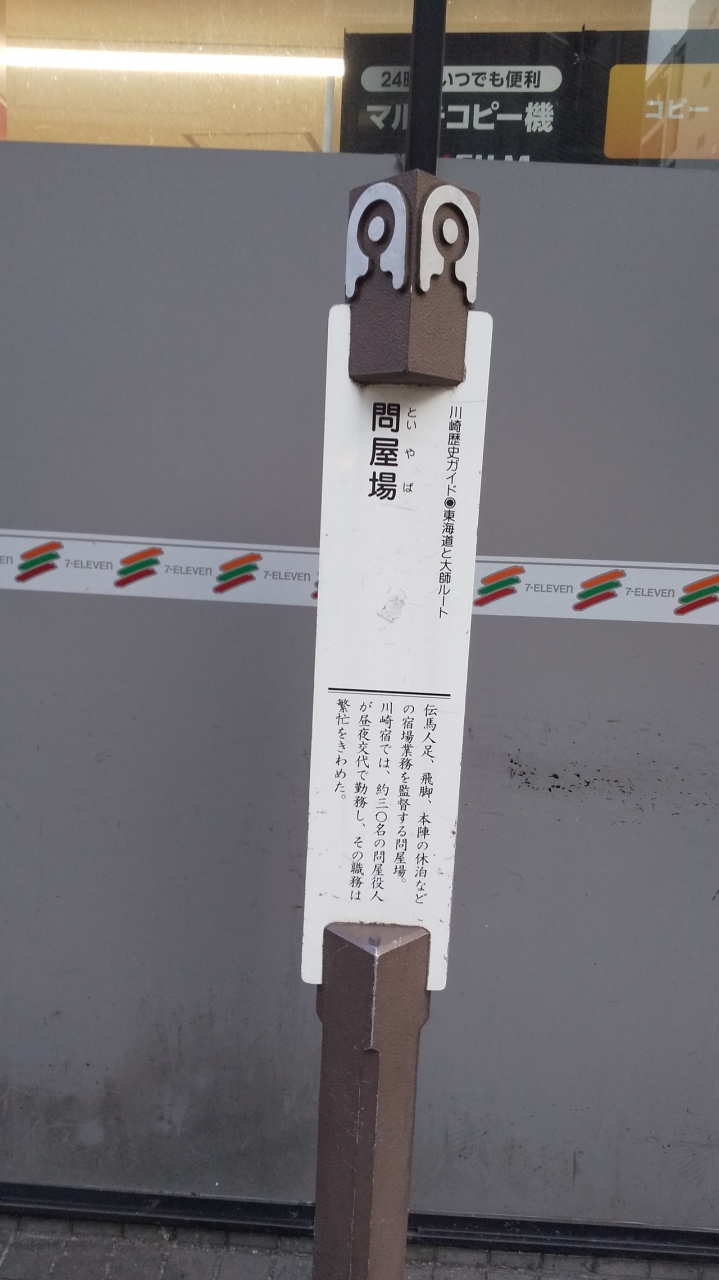 ひっそりとある記念碑です、旧東海道のイメージ、川崎宿が、最近の川崎市の新しいイメージで、いろいろな観光スポットと、案内板が設置されており、その一つになります。案内文にもありますが、当時の川崎宿を運営する人たちの職場だそうです