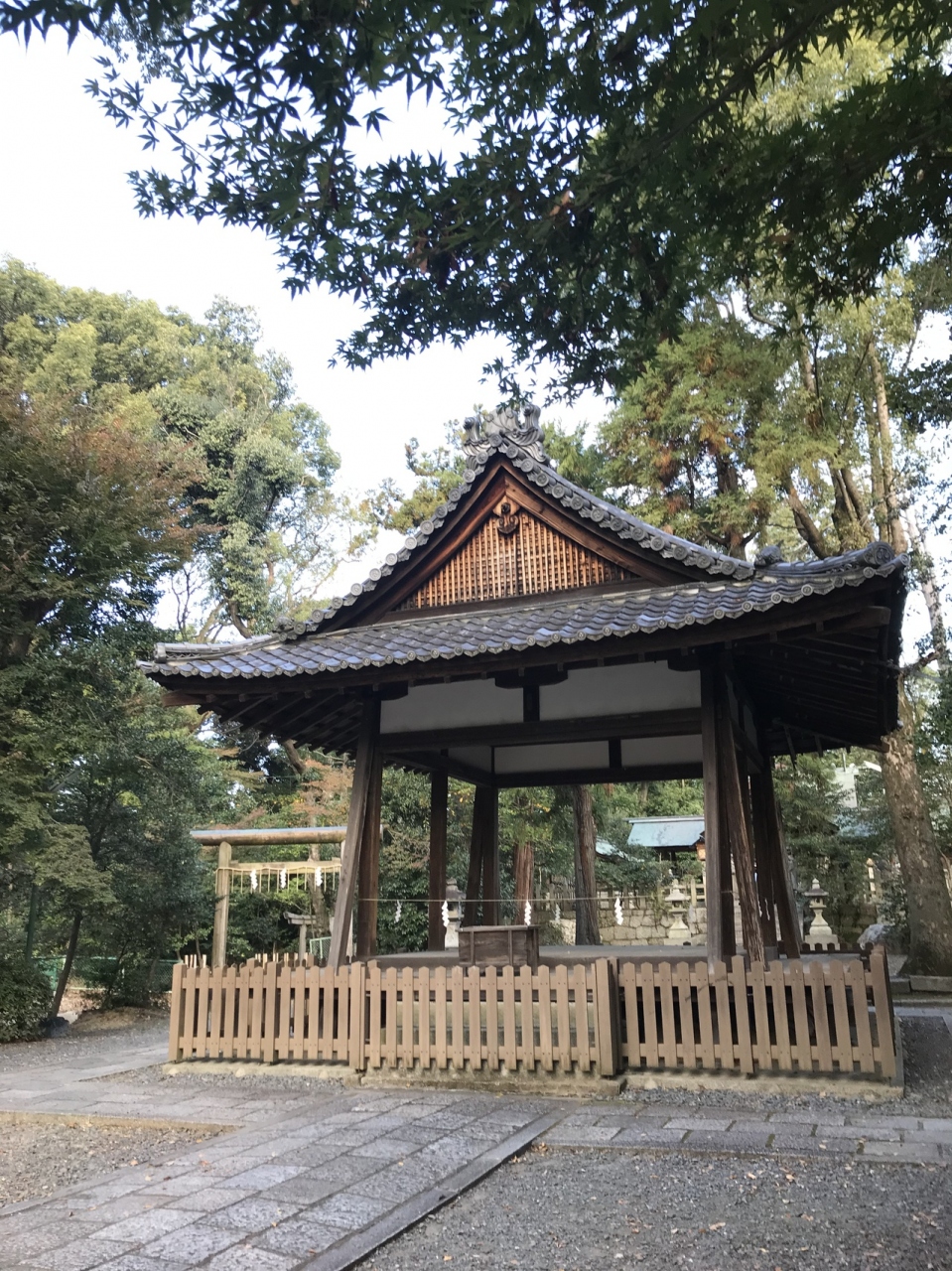 嵐電は、ユニークな駅名が多いのですが、こちらの神社と同じ名前の駅があります。こちらの神社は、森に囲まれた場所に本堂があり、環境抜群です。参道の先に能舞台があり、その先の本堂は、森を背景にして緑が映えて美しいです。