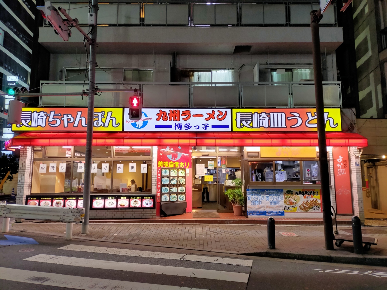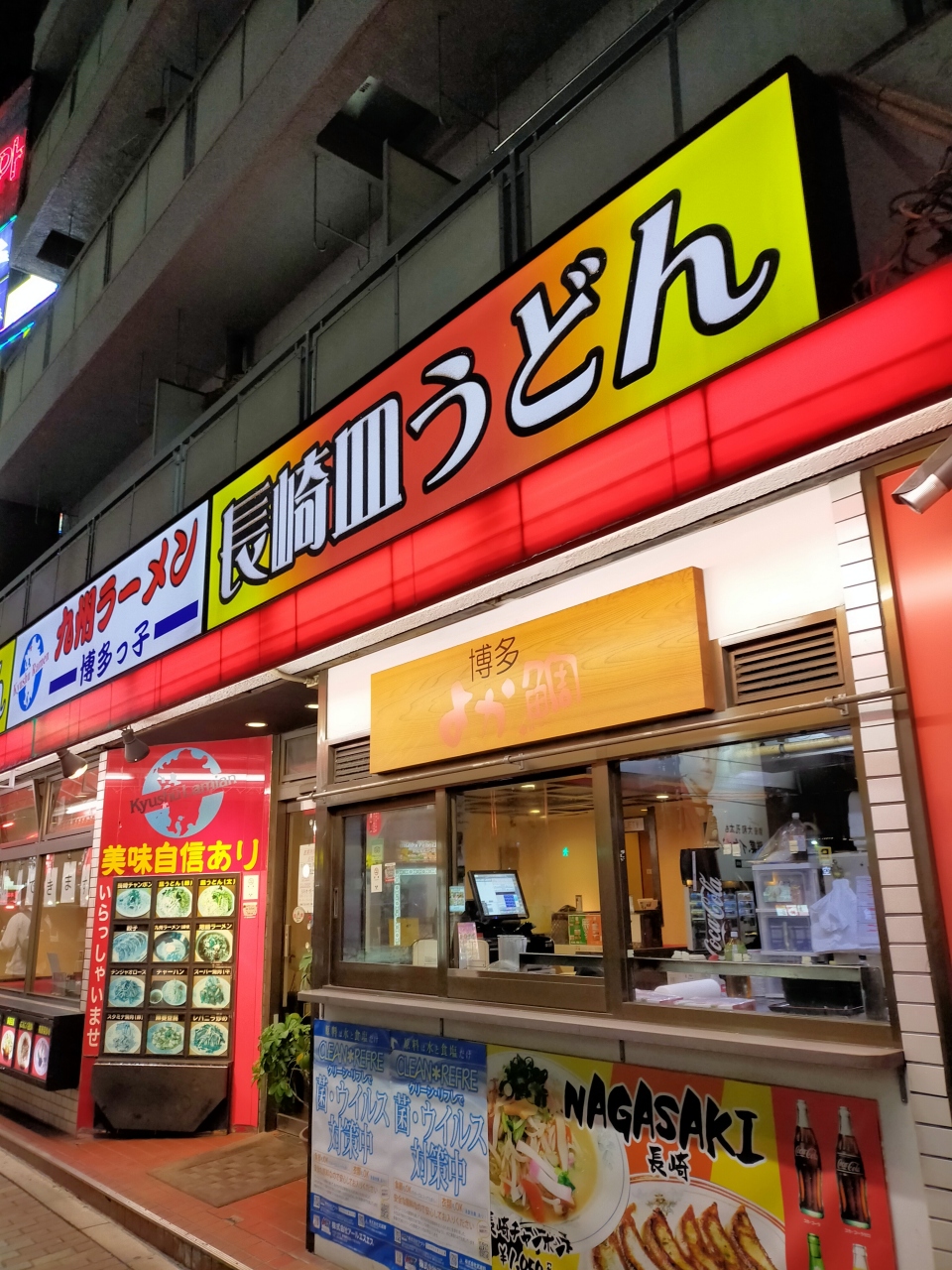地下鉄の東新宿駅と新宿三丁目駅の中間辺り、歌舞伎町の脇に位置するラーメン屋です。名前の通り博多九州ラーメンがウリのラーメン屋です。ラーメン以外は普通のラーメン屋とほぼ同じ、餃子、チャーハン、中華丼や定食などのメニューもあります。せっかくなので長崎ちゃんぽんなんかがオススメですかね、是非。