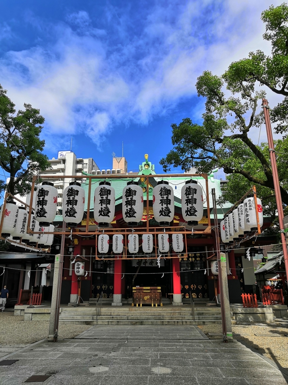 以前本町に宿泊した時に来たことあったのですが、今回は淀屋橋のホテルでしたが、朝の散歩で再訪しました。千年以上の歴史がある神社で浪速の氏神という感じで特に厄除け・縁結びにいいらしいです。以前はちょうど結婚式があってあまり見れませんでしたが、今回はゆっくり見学できました。