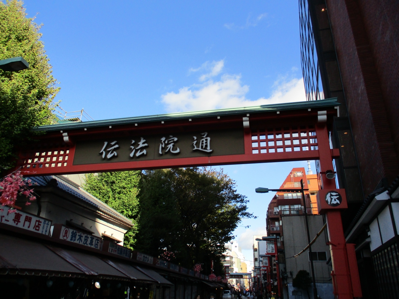 浅草には様々に名前の付いた通りがありますが、伝法院のそばにある有名な通りを、浅草寺川から入って散策しました。小規模の店舗が並んでいて、天ぷらなどの食事が楽しめる飲食店もありました。参拝後にぶらぶらと歩くのにちょうど良い通りだと思いました。